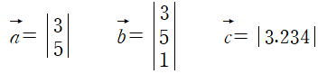 : 데이터의 행, 열(python에서는 list로 사용된다.) 여러개의 숫자(원소)가 순서대로 모여있는 것으로 순서가 유의미하기 때문에 유지되어야 한다. 위에서 아래로 쓰는 복수의 행과 하나의 열로 표현한다. 기호 위에 화살표가 있는 소문자로 표기함.