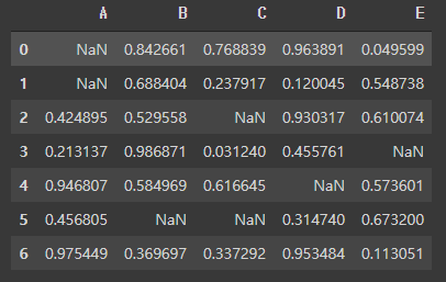 data.iloc[3, 4] = np.nan