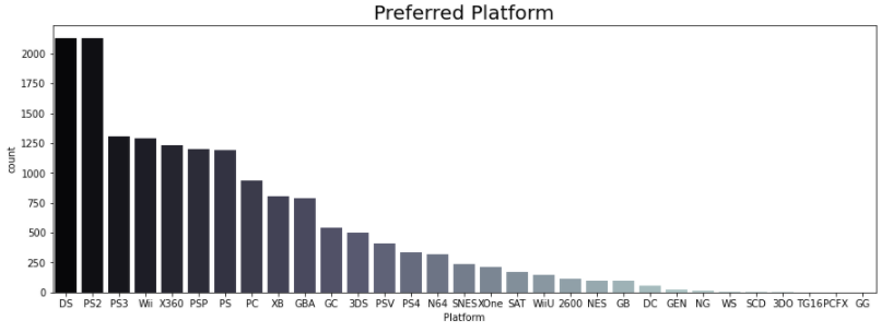 ax21 = sns.countplot('Platform', data = data, order = data['Platform'].value_counts().index, palette='bone')