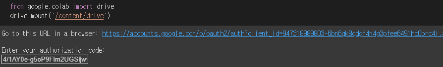 아래 코드를 복사하여 다시 colab 화면으로 돌아간다.